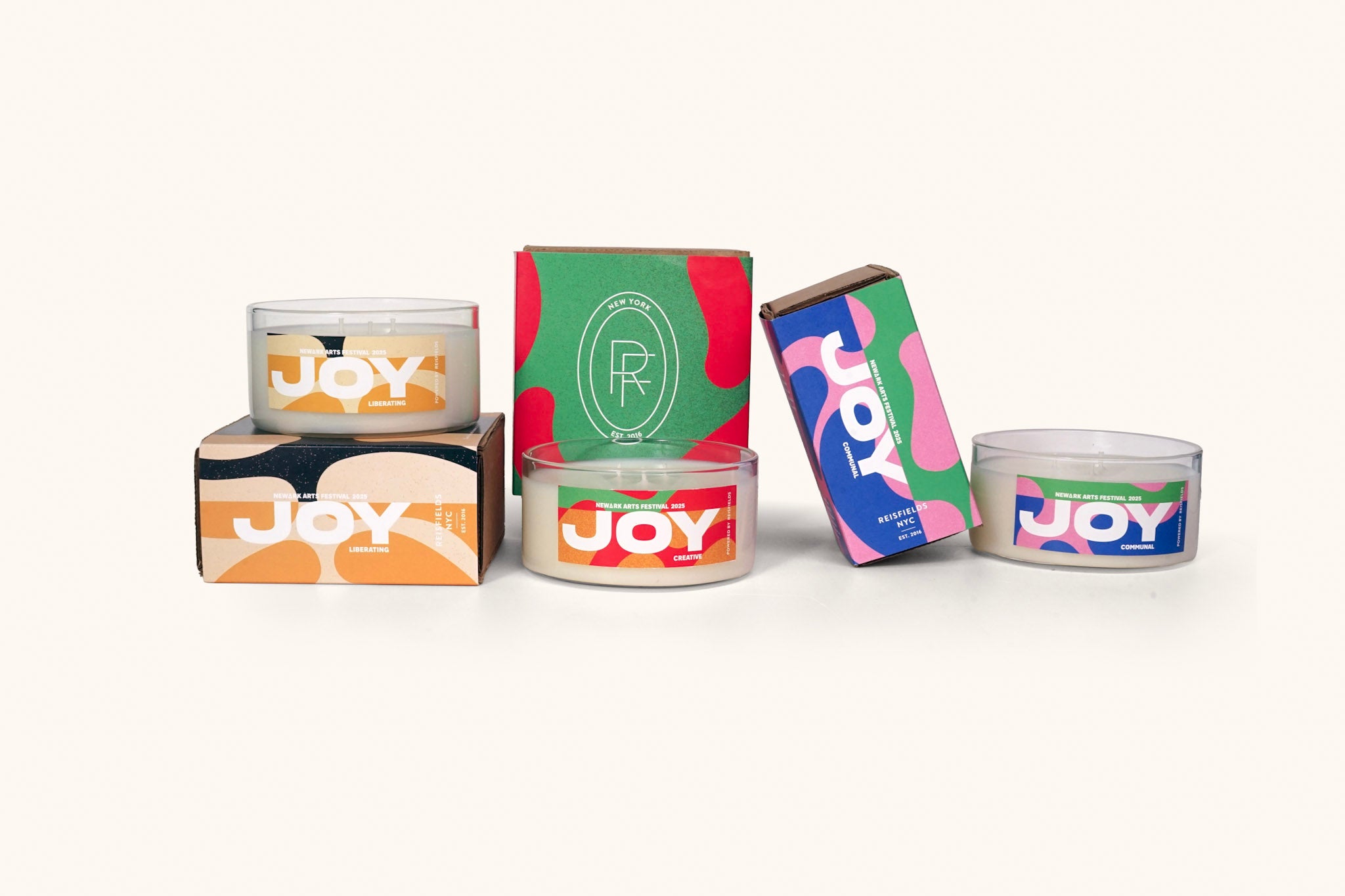 Bring home the full JOY Collection — Communal JOY, Creative JOY, and Liberating JOY — a trio inspired by Newark Arts Festival 2025: JOY. Each candle is hand-poured in small batches, wrapped in original label artwork by Newark-based artist Samantha Treadwell, and infused with layered notes that capture the beauty of community, creativity, and freedom.